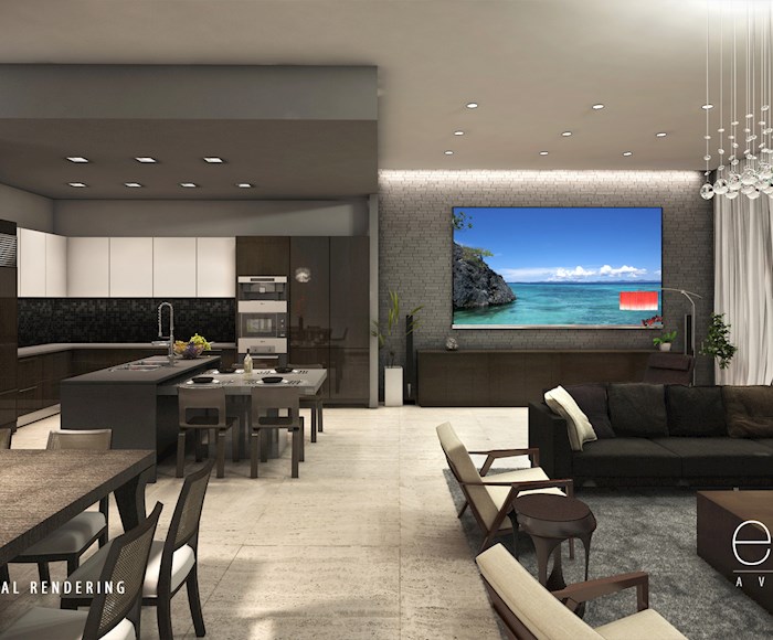 All residences come equipped with a contemporary lighting package, including recessed lighting, dimmers, and Lutron lighting control. All residences come equipped with custom Italian cabinetry, built-in SubZero/Wolf appliances, and exquisite stone countertops.