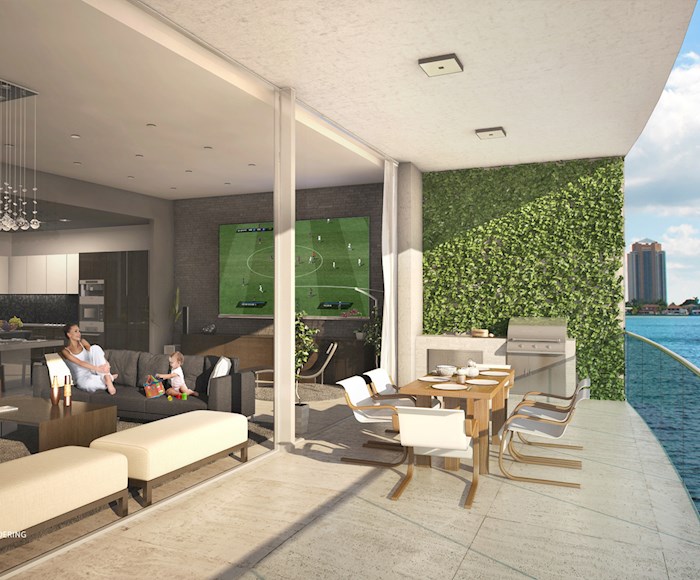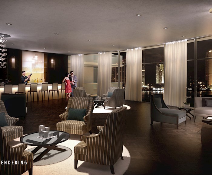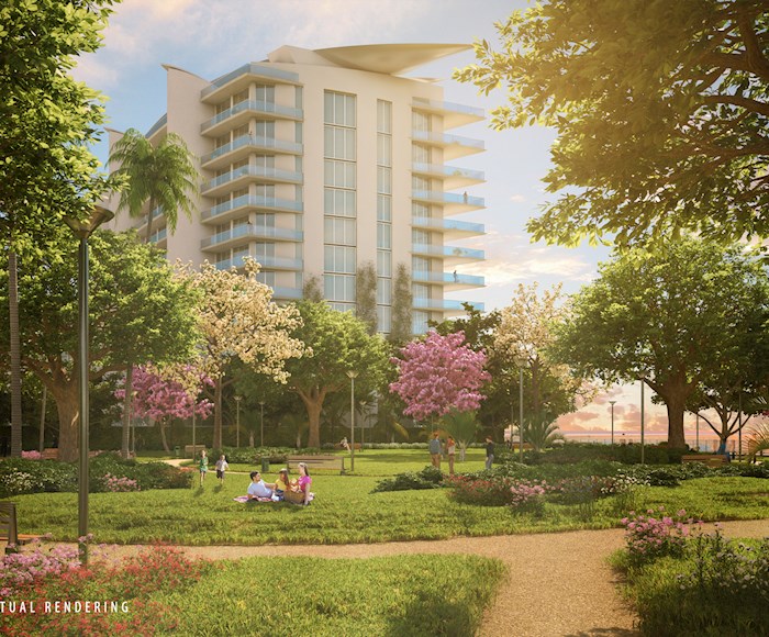 Private cooled storage space for all residents, two private porte-cochere entrances and two assigned garage parking spaces within steps from your private elevator. Apple® Home Technology included in all residences. Floor-through residences featuring unobstructed water views and each residence offers a bayfront terrace with summer kitchen.