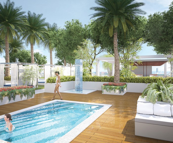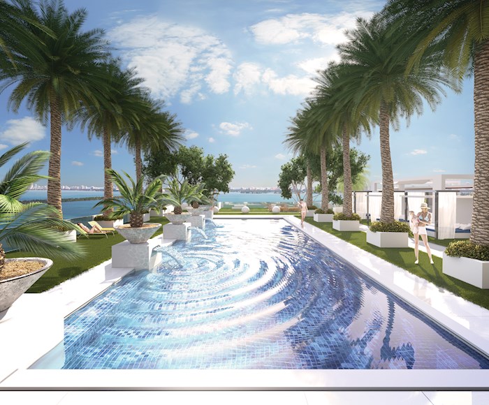 Huge residences open out to graciously sized balconies and panoramic Bay and city views. Condominium life is enriched by elevated outdoor amenity levels. From the 20,000 sq. ft. resort deck, you will enjoy sparkling waters of an ocean-view pool and secluded spa. You’ll soak up warm Miami sunshine on the cabana area. A gorgeous summer kitchen grants you plenty of excusesfor outdoor entertaining.