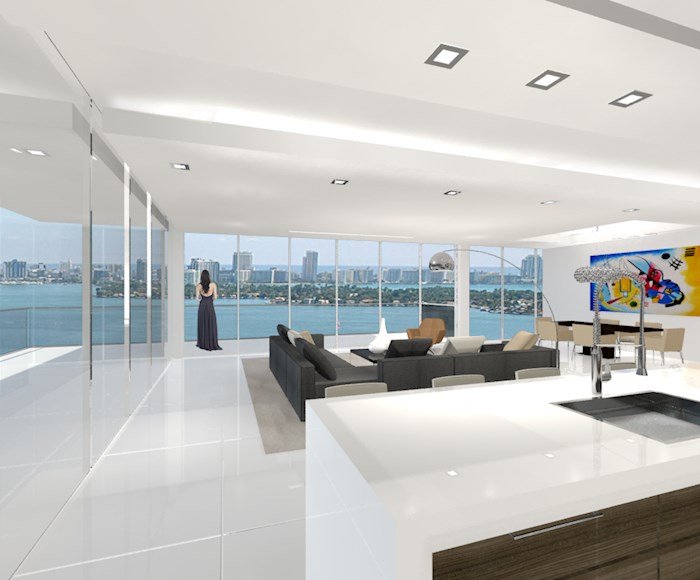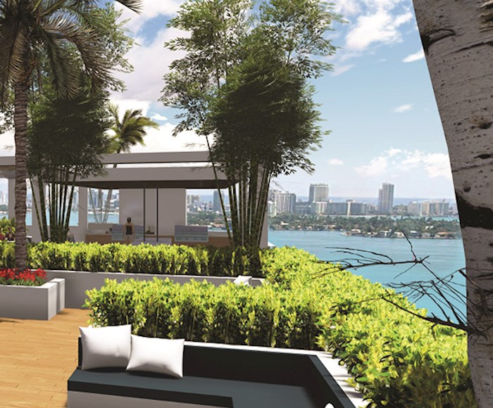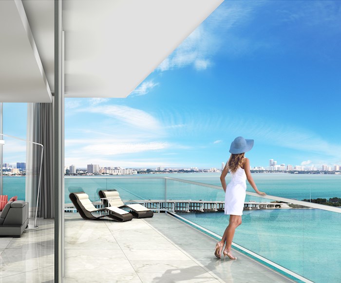 The residences featuring unobstructed views of Biscayne Bay. Each residence offers 7” Wide private terraces.