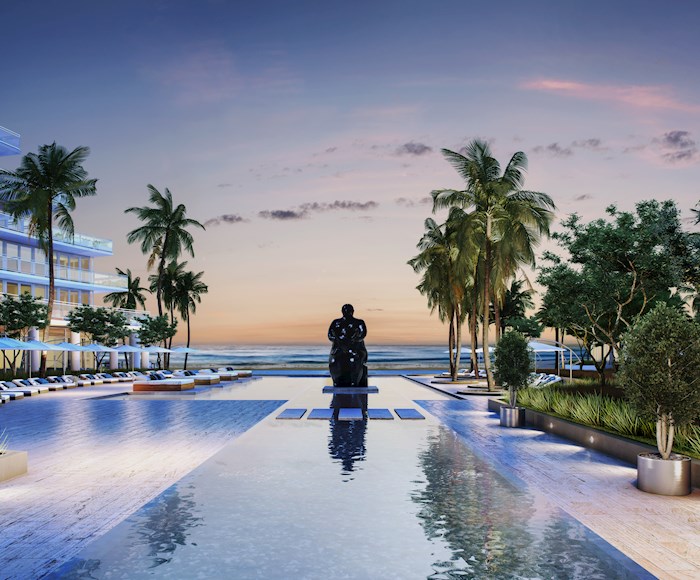 Multiple swimming pools overlooking the Atlantic Ocean, multiple world-class restaurants. Private pool and beach club services and amenities including cabanas and food and beverage service. World- class Spa by Auberge offering all-natural beauty and relaxation treatments inspired by the local environment within a tranquil and soothing atmosphere. State-of-the-art Fitness Center overlooking the pool deck and Atlantic Ocean with dedicated studios for yoga and meditation. Club Room with multimedia facilities, billiards and gaming tables, Children’s Playroom, Library, and Business Center.