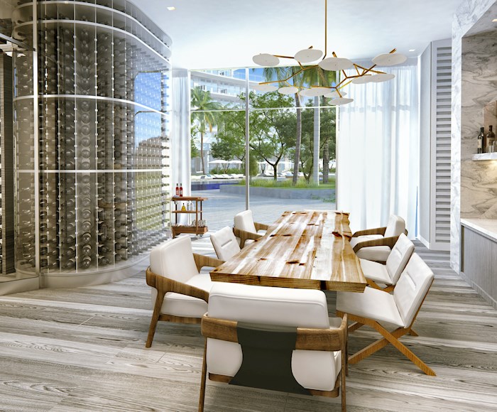 Flow-through floor plans with 9’6” ceiling heights and floor-to-ceiling windows with breathtaking views of the city, Atlantic Ocean and the Intracoastal Waterway. Unobstructed northern views from all residences above the 2nd floor. Oversized terraces with private pools in select residences, private elevator access to the residences, separate service entrance in select residences. Kitchens designed with Italian cabinetry, stone countertops, Sub-Zero and Wolf appliances and an integrated espresso / cappuccino maker. Laundry room with full size washer and dryer. Smart-home technology, and pre- wired for high-speed Internet access and WiFi. Personalized concierge services to assist residents in accessing the most desirable social, entertainment, and lifestyle experiences in Fort Lauderdale and beyond.