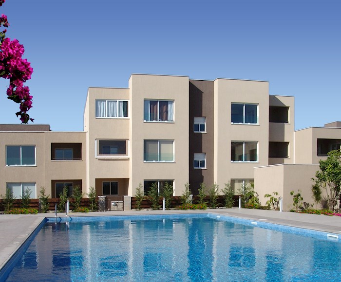 Zephyros Village 4 located in the village of Mandria with its quaint and colourful town square. It is a modern apartment and town house complex. Excellent specifications : Walking distance to the sandy beach. 10 minutes drive to Venus Rock Golf Resort. 5 minutes drive to Pafos International Airport, 15 minutes drive to Pafos Town. Close to a wide range of services and amenities. Zephyros Village 4 also offers nearby attractions including the legendary ‘Birthplace of Aphrodite’ and the spectacular internationally acclaimed 18-hole champion golf course at Secret Valley. The perfect home for you is one that reflects your personality, preference and lifestyle, something that makes the visitor feel welcome and the owner comfortable to live in and proud to own. The development also consists of a communal swimming pool. Private parking facilities and landscaped areas contribute to the natural greenery surrounding the project. The finishes and fixtures of apartments at Zephyros Village 4 have been hand-picked by a professional team of interior designers, reflecting on the calibre and quality of the architectural design. This superior selection will provide residents with the ultimate in convenience, comfort and luxury. Private car parking and automatic entrance gate. High quality veneered kitchen and bedroom wardrobes with a big variety of colours to choose from. Natural or synthetic granite kitchen worktops. A choice of imported ceramic flooring - laminated parquet is optional. High standart aluminium sections with double glazing windows. Provision for Air conditioning split units in all room. Provision for a satellite system and wireless secutity system. You can enjoy the large communal swimming pool and children's pool.