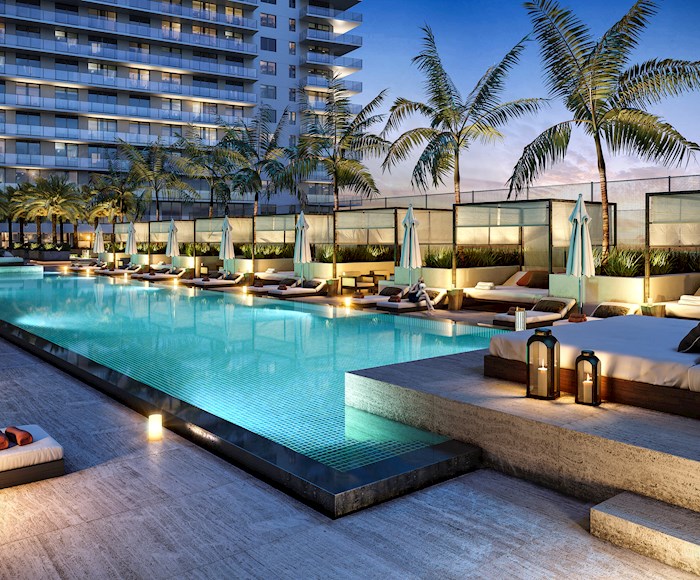 This projects include over 50 luxury condominiums in South Florida including Apogee Beach, Hyde Resort & Residences, Mansions at Aqualina and Bellini Bal Harbour. Elegant double volume entrance lobby exquisitely appointed with designer furniture and finishes. Aqua Club situated directly on the Intracoastal Waterway offering access to jetskis, paddle boards, kayaks, windsurfing, and kitesurfing. Expansive pool deck with dual views of the Intracoastal Waterway and Atlantic Ocean. Pool deck will feature semi-private cabanas, infinity-edge pool, outdoor kitchen and dining area, along with an outdoor movie theater with lounge area and fire pit. Sports Club featuring amazing Intracoastal views from the outdoor multi-use sports court for tennis and basketball as well as an indoor racquetball court. Private rooftop lounge area exclusive to unit owners with a Jacuzzi, modern outdoor shower, lounge area with sunbeds, dining area, fire pit, and panoramic water views. Fully equipped fitness center with cardio theatre overlooking the pool deck and Intracoastal. Exclusive Health spa with men’s and women’s facilities.Fully finished interiors furnished with contemporary European designer furniture. Living Rooms appointed with luxurious European design furniture and LED “Smart” televisions. In unit technology featuring high speed internet access, WIFI , phone service and individual climate control systems. Security features including in-room safes and electronic door locks. Wide private terraces with glass railings and unobstructed views, accessible from the living and bedroom areas. Dazzling Water views from virtually every residence.