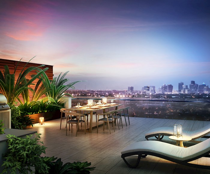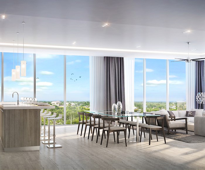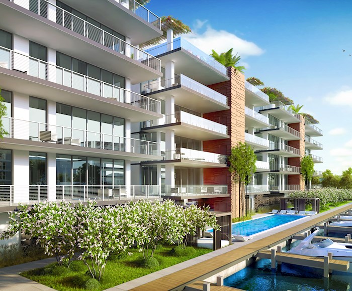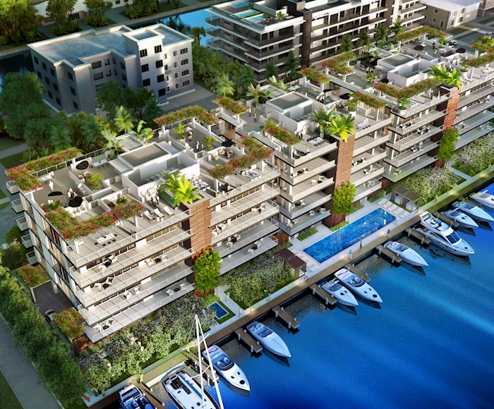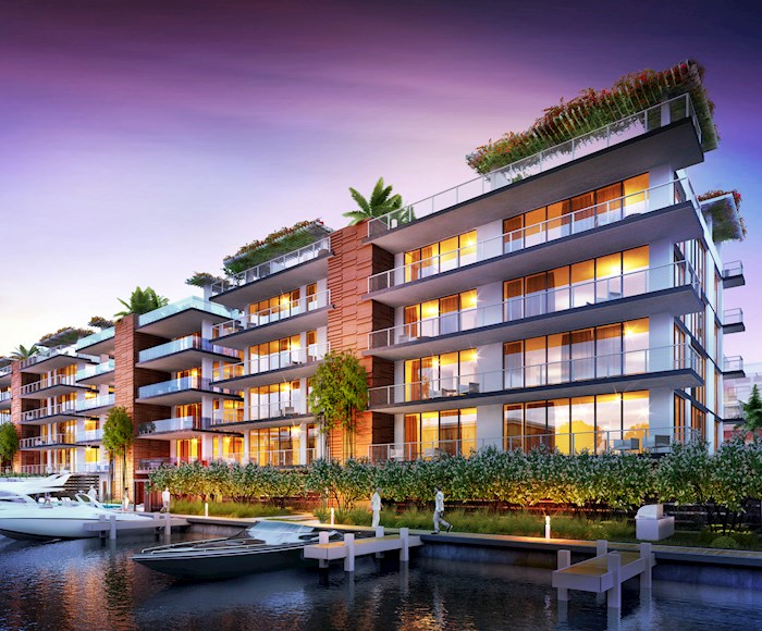 Waterfront building consisting of 20 luxury residences. 50 boat slip with shore power pedestal, 360 linear feet of waterfront. Boat Docks, and deep water open-access wide canal. Smoke-free environment (excluding balcony area. FOB secure garage entry, building entry, and elevator access, 24/7 video surveillance. Private roof top terraces included with every unit with elevator access. Two garaged spaces per unit, Electric car ready garage spaces. Hurricane impact windows. High-speed private elevators that lead to individual foyer entry. State-of-the-art fitness facility. Zen gardens with Royal Palms. Outdoor storage space for kayaks, water-skis, paddleboards. Outdoor barbeque area on the pool deck. High-end kitchen cabinetry, stone counter top, Sub-Zero and Thermador appliances. Gas powered cooktop in large chef’s kitchens, frameless, glass-enclosed showers. Floor-to-ceiling windows, over-sized balconies with glass railings. Beautiful water and downtown skyline views.