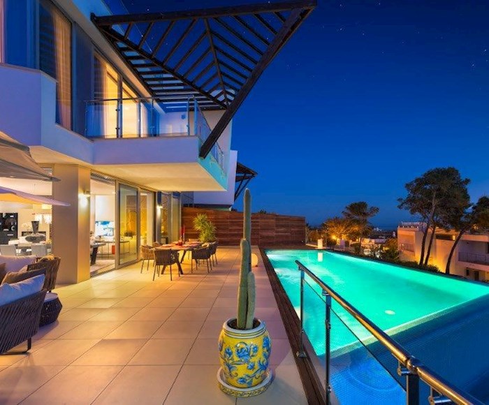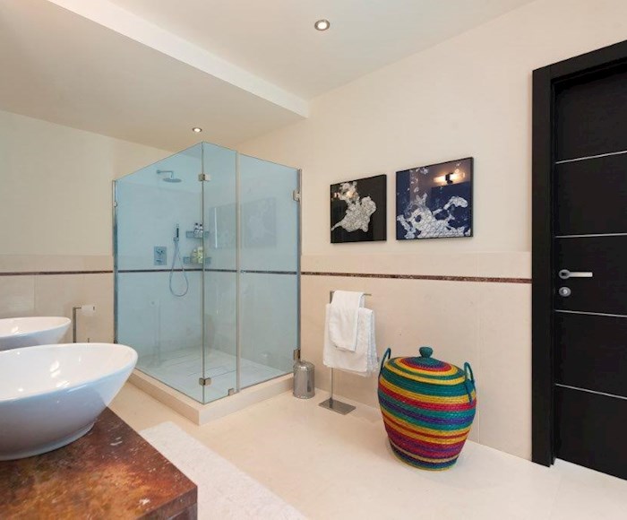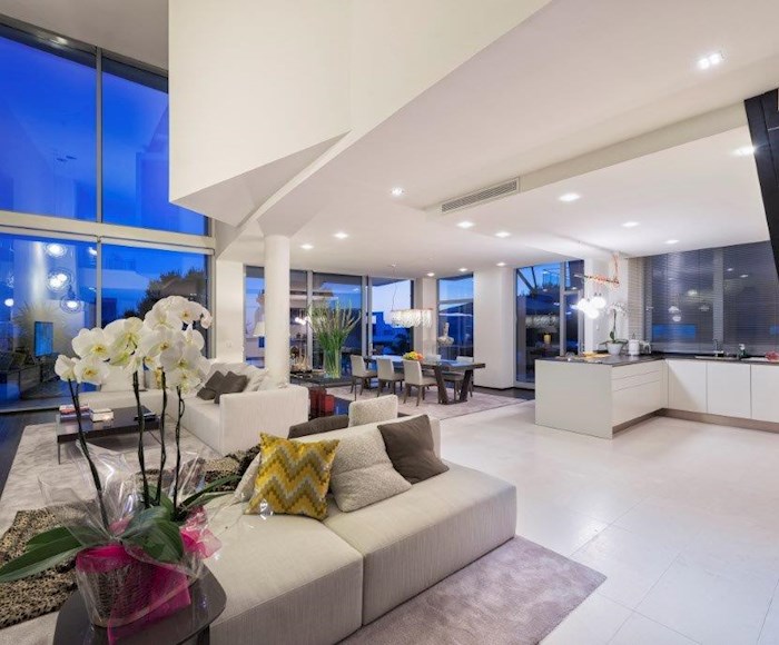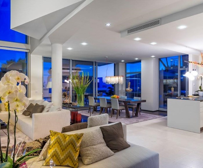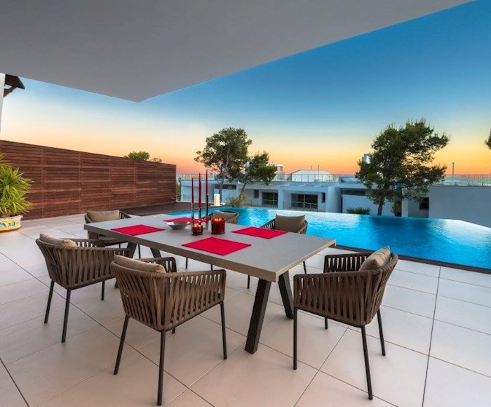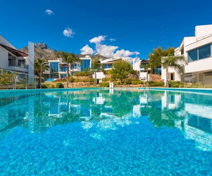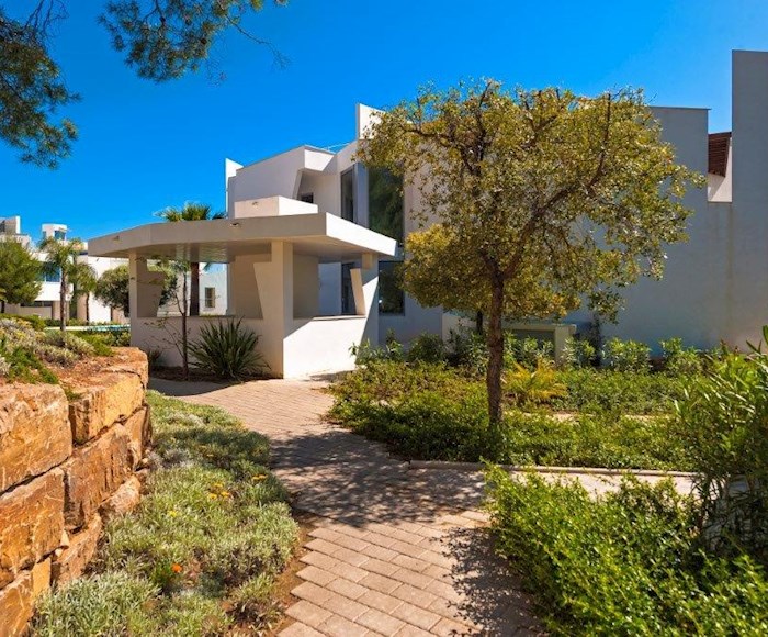 The modern and innovative design of the complex, offers six different types of units, each with en suite bathroom and hydro-massage baths. All townhouses have private garages for two to three cars and up to three storage areas, which can be easily converted into a wine cellar, cinema room or gymnasium. Some townhouse have their own private lifts and swimming pools, and large terraces with sumptuous lounge areas. The finest materials have been selected and applied throught. Combining wood, stone and marble with modern conveniences, such as inteligent houses systems, underfloor heating, fully fitted bathrooms, and fire place. The onsite communal facilities include two large outdoor swimming pools, three Spa areas featuring gymnasium, indoor swimming pools, saunas, Turkish baths and relaxation areas. Fire place in the living room. Wardrobe according to the bedroom type. Italian-designed kitchen furniture in different colours and materials. (SALVARANI – Model Highteak). Built-in MIELE appliances including dish washer, washing machine, dryer, oven-microwave, vitro ceramic hob and kitchen extractor. Stainless steel sink with monocontrol tap. Every kitchen equipped with an American style refrigerator (SAMSUNG) and wine cooler (AEG). Furnished laundry in each ApartmentVilla.