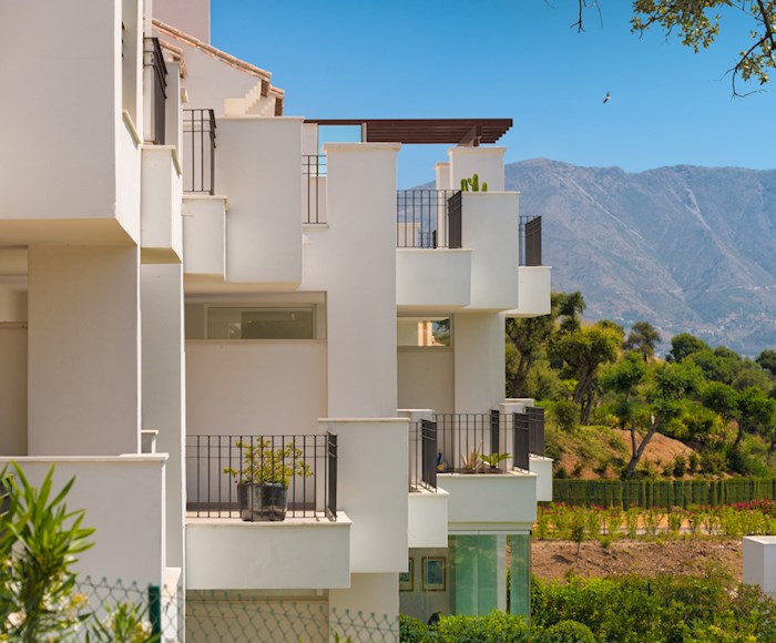 La Floresta Sur is a new development of 15 apartments and penthouses of 2 and 3 beds in a gated community with private swimming pool and gardens. Set in a peaceful residential area in beautiful natural environment surrounded by a protected oak forest. Having a relaxed atmosphere, undisturbed by any noise. All owners will have free access to the nine-hole, par 3 El Soto Golf Course, which also has gym, sauna and a clubhouse with a restaurant. Within 5 minutes drive, you can also play golf on the 36-hole La Cala Course and the 18-hole D0ña María. All apartments have two complete bathrooms, an open-plan kitchen and a terrace which is directly accessible from both the lounge and the master bedroom. Ground floor apartments have a community garden for private use. All units are built to the highest standard with first-class finishes including a modern designed integrated kitchen with quartz worktop, thermal and acoustic insulation, air-conditioning, solar powered heather and automatic permanent ventilation system in all rooms. Each block has its own elevator and exterior carpentry finishes in aluminium. One exterior parking area for each apartment.