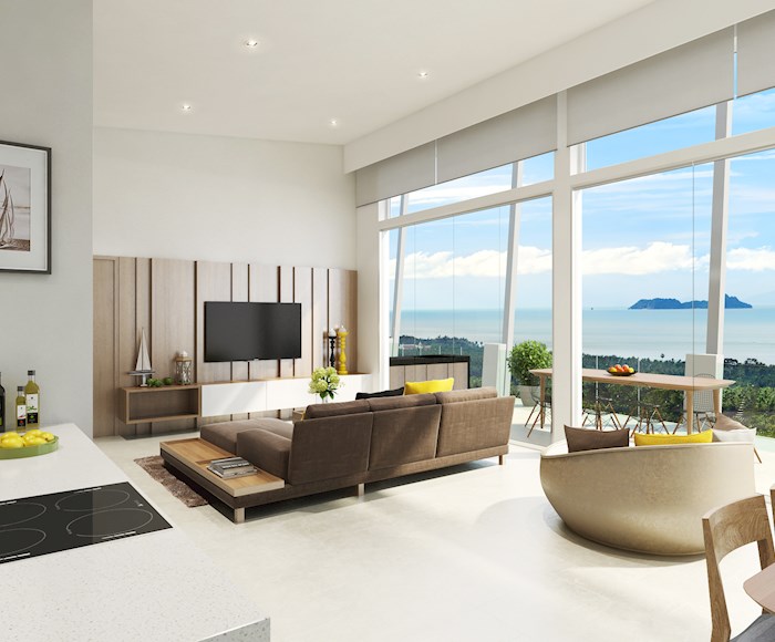 One of the most stunning of all Thailand’s tropical islands, Koh Samui lies in the Gulf of Thailand some 30 kilometres off the eastern shores of the country’s southern peninsula. Azur Samui is situated just 20 minutes from the airport, and 20 minutes from the extensive shopping, diverse restaurants, and vibrant nightlife of Chaweng. The Palm residences designed for maximum ease and comfort. Palm Residences are served by elegant glass elevators, offering owners stunning views of the panorama as they enter and leave their apartments. The apartments all benefit from excellent natural light, extra large balconies and amazing sea views. Contemporary design, granite kitchen surfaces, and marble and stone bathroom features.