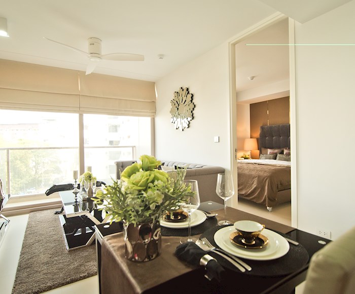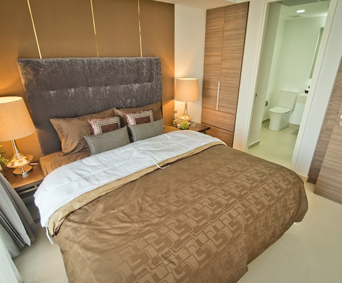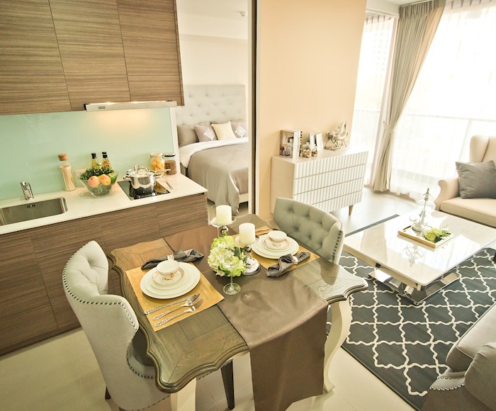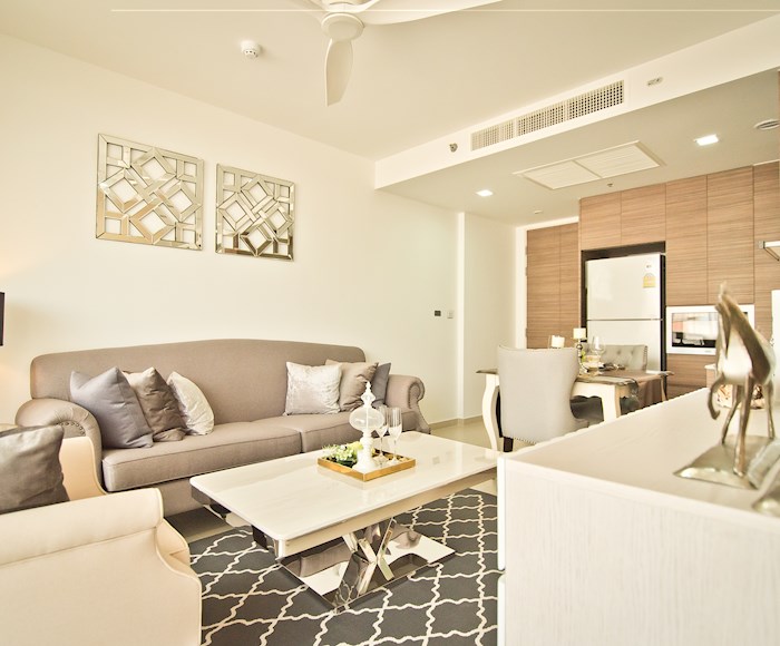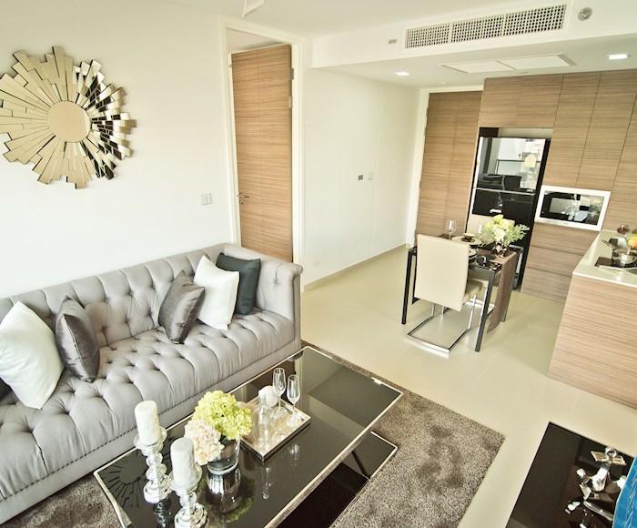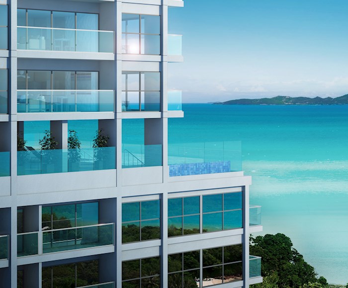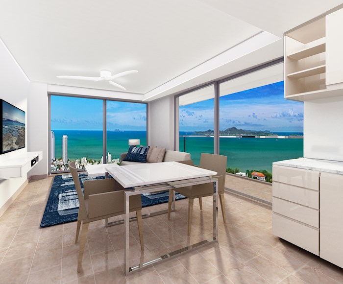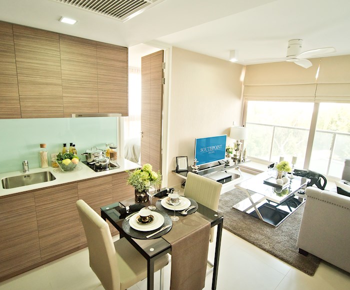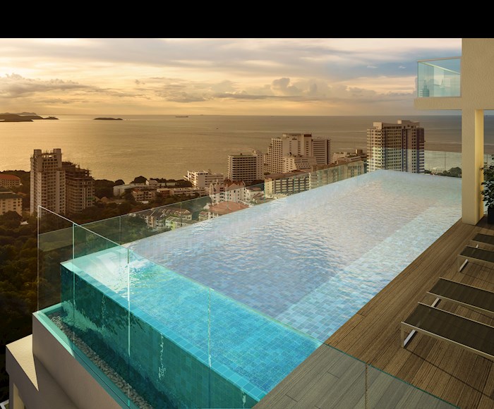 Southpoint Pattaya, high end quality condominium project comprises of 2 high rise towers. Residential Tower of 30 floors has 431 units and Suits Tower of 20 floors has 224 units with stunning panoramic sea views over Koh Larn, Pattaya Bay and Jomtien. Automatic card control access gate to car park floors and Automatic card control access to resident floors via elevators and for after hours access to buildings. 24 hour on-site security guarding, with CCTV monitoring. Kitchen cabinets; with option for door&top finishes. Facilities : Infinity edge pool on 25th floor, swimming pools, including children's pool and Jacuzzi. Extensive landscaped gardens, sun deck and sky garden.