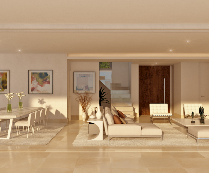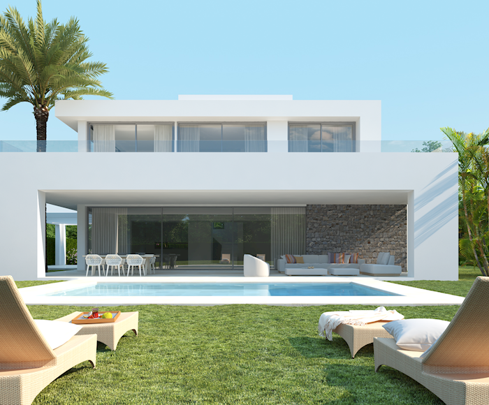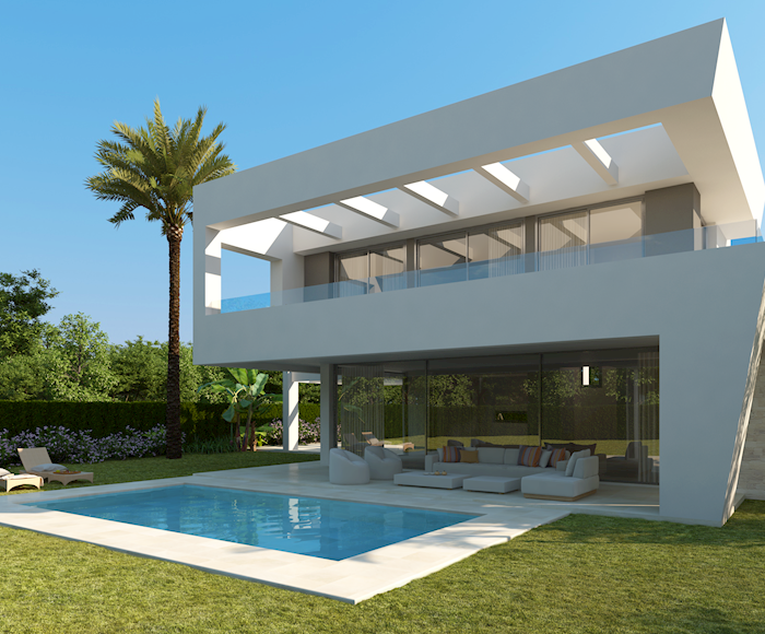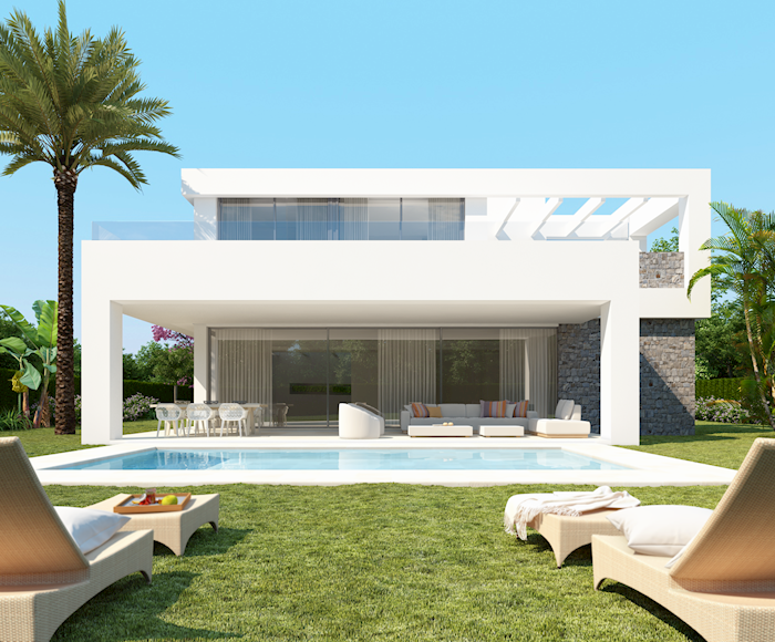 An integral part of the vision of the La Finca 2 Villas project is the juxtaposition of modern contemporary styling with the peaceful surroundings of traditional olive groves and a beautiful mountain backdrop, thus maintaining the peaceful Andalusian atmosphere unique to the area. In blending natural beauty with modernity we are confident to offer the best of both worlds, a location which is central and convenient yet tranquil and secure. This new project comprises 35 luxurious, contemporary design villas with private pools, with 24 hour security and features a new private Clubhouse with indoor pool, spa, gym and social lounge, all for the exclusive use of La Finca de Marbella residents. Following through with the modernist vision of La Finca de Marbella we are pleased to offer two stunning and different villa styles, the Iroko and the Ebano. Both models are available in 3, 4 or 5 bedroom, spacious, independent villas which combine sleek architectural language with a tranquil, natural setting. Careful planning has ensured that there will be sea and mountain views from many of the plots. The majority of plots have south west orientation with views of Marbella and the sparkling Mediterranean, the beautiful La Concha Mountain, and the famous Puerto Banús. On a clear day there are views of Gibraltar and Africa from many plots. One of the most notable design features of the villas is the use of large windows to maximise light and space. In the open plan living area the windows are full height, from floor to ceiling, and in almost all villas these open and retract into the walls. This transformation seamlessly unites the interior and exterior living areas allowing owners to maximise their enjoyment of the unique micro-climate which Marbella has to offer, all year round.