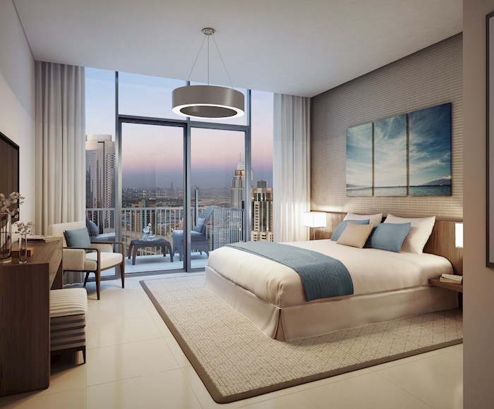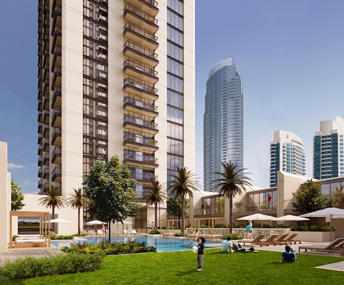 Boulevard Heights located on Mohammed Bin Rashid Boulevard in Downtown Dubai. The development is designed to take full advantage of the vibrant city views of Downtown Dubai and across The Opera District. The myriad of pedestrian walkways effortlessly connects residents to the key areas within Downtown Dubai including The Dubai Mall, The Dubai Fountain and Souk Al Bahar. Nearby hotels, including the Armani Hotel and The Palace Downtown Dubai among others offer residents access to 5-star services at all times. Access to nearby communities is facilitated with a superior road network and excellent transport connectivity that also links directly onto Dubai’s main highway system. The beautifully appointed one, two, three bedroom apartments and townhouses in BLVD Heights are designed with utmost functionality, comfort and wellbeing in mind. Large private balconies bring in natural light, while ensuring absolute privacy. The lobby and adjacent cafés are carefully planned as a continuation of the urban feel of the Mohammed Bin Rashid Boulevard. Floor-to-ceiling windows in the apartments and townhouses extenuate the feeling of space and light while the combination of subtle colours and textured surfaces ensures a luxurious finish. Open plan interiors are carefully arranged to include ample storage while top-of-the-range, custom kitchens and bathrooms lend exclusivity to the sumptuous decor. BLVD Heights is designed with the perfect balance in mind. The podium is designed to activate a direct connection to the future offerings planned for The Opera District. The lobby area offers a 24-hour concierge service along with a social area. The upper levels of the podium within BLVD Heights will house townhouse units, a landscaped swimming pool area, private terraces and resident amenities; all situated with alluring views towards the Boulevard.