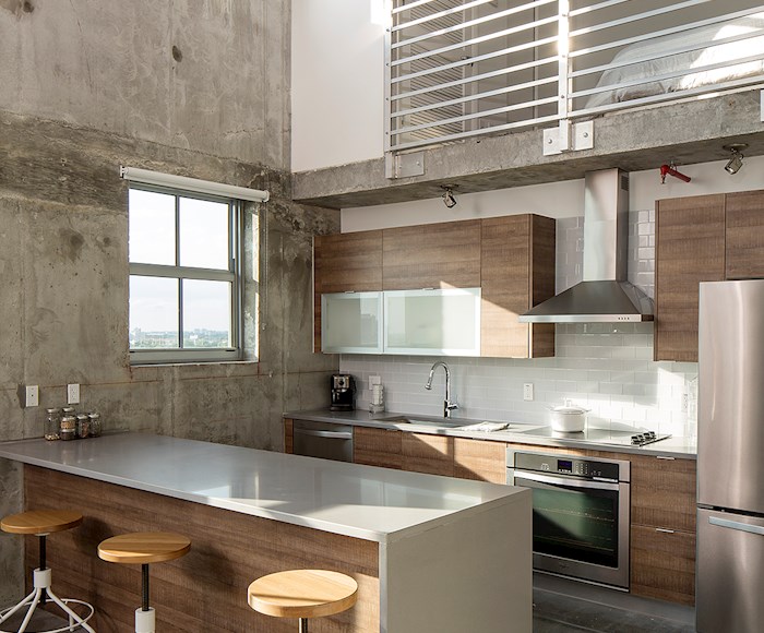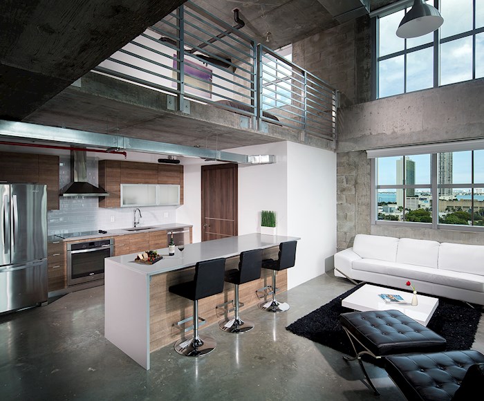 All lofts have 18’ ceilings and several floor plans offer spacious balconies to enjoy the views of Downtown Miami or Biscayne Bay. Bi-Level floor plans featuring new kitchens and open living-dining spaces on the entry level and an open master bedroom on the toplevel. Several floor plans feature full baths on top level and ½ baths on the entry level. Kitchens feature: Premium Ash Wood and Glass Cabinets, Frosted glass subway tile back splash, Quartz counter tops and Whirlpool Stainless Steel appliances. Bathrooms feature: large limestone tiled walk in showers with glass doors and stackable washers and dryers. A sleek modern design includes stainless steel appliances and exposed air conditioning ducts. All residents will have access to the private garage. The building has 24/7 security and is gated with electronic access. Maintenance on site and Property Manager on Site. Filling Station Lofts provides a rooftop pool and pool deck, on-site maintenance and concierge, fitness center, and street-level retail among its amenities.