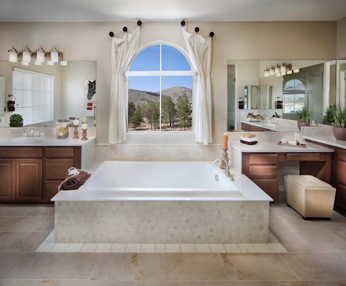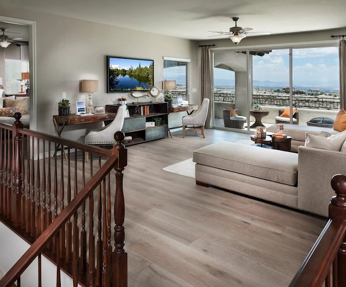 On the edge of the Valley, Summerlin Delano is located in one of the most desirable areas in Las Vegas. There are six two-story, single-family floor plans, with numerous design touches for beauty and practicality. They include upgrades like granite countertops, gourmet kitchen with appliances and elegant raised panel interior doors. Also, every buyer receives two of Lennar’s most popular packages: Nexia Home Intelligence and Lennar’s Everything's Included®. Nexia Home Intelligence features home automation with remote home management, providing control over home comfort, efficiency and security from anywhere. Lennar’s Everything's Included® is an exclusive offering from the builder, great value and the latest in luxury, technology and efficiency. Among the items throughout the home: professional landscaped front yard with irrigation system, GE® stainless steel appliances cultured marble countertops with double sinks, and plush Mohawk® carpeting.