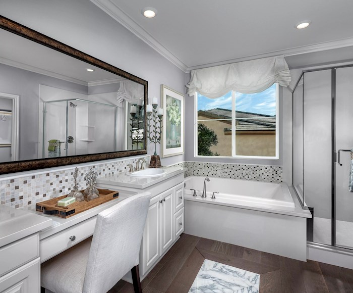 The Woodlands Silver Oak is located in Simi Valley near the California State Route 118 freeway, a drive of approximately 40 minutes from Los Angeles. There are two one- and two-story, single-family floor plans, with numerous design touches for beauty and practicality. They include courtyard and covered patio; charming architectural detailing; ceramic tile flooring in the entry, kitchen, nook, laundry and bathrooms; and Mohawk® wall-to-wall carpeting. Also, every buyer receives two of Lennar’s most popular packages: Home Automation and Lennar’s Everything's Included®. Home Automation provides control over home comfort, efficiency and security from anywhere. Lennar’s Everything's Included® is an exclusive offering from the builder, and the latest in luxury, technology and efficiency. The Next Gen® Superhome floor plan is available and accommodates multiple family generations under one roof. Among the items throughout the home: GE® stainless steel appliances, dual-glazed vinyl windows with energy-efficient glass and water conserving low-flow aerator on all bathroom faucets.
