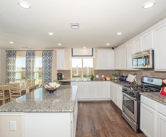 McCrary Meadows offers spacious homes that are well suited for families of all sizes, including first-floor master suite and second-floor game room in a development that also provides multiple amenities. There are five one- and two-story, single-family floor plans, with numerous design touches for beauty and practicality. They include Monterrey-drag textured walls and ceilings; rounded drywall corners throughout home; raised panel interior doors throughout home; and designer light fixtures. Among the items throughout the home: stainless steel appliances, durable hard-surface flooring, satin nickel door hardware, chrome-finished faucet with pullout nozzle sprayer, granite countertops and recessed LED lighting.