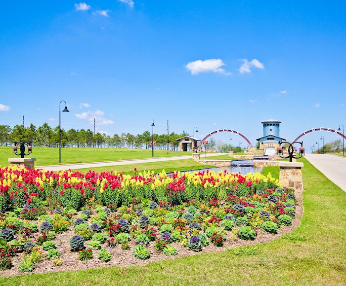 Amenities and Community Highlights : Flewellen Creek Park measures approximately 150 acres (61 hectares) and runs through the heart of the community. Residents can enjoy a meal at the on-site Italian Maid Café at the Clubhouse Commons, restaurant, amphitheater. There is a community center, along with tennis court, fitness center, basketball and volleyball courts and soccer fields, a small lake, park and picnic area, disc golf course, playgrounds, dog park, nature trails, and outdoor cooking area. Nearby, the Adventure Island Water Park features a resort-style pool, a wading pool, a water slide and a splash park for children.