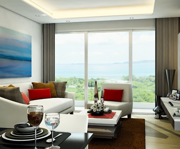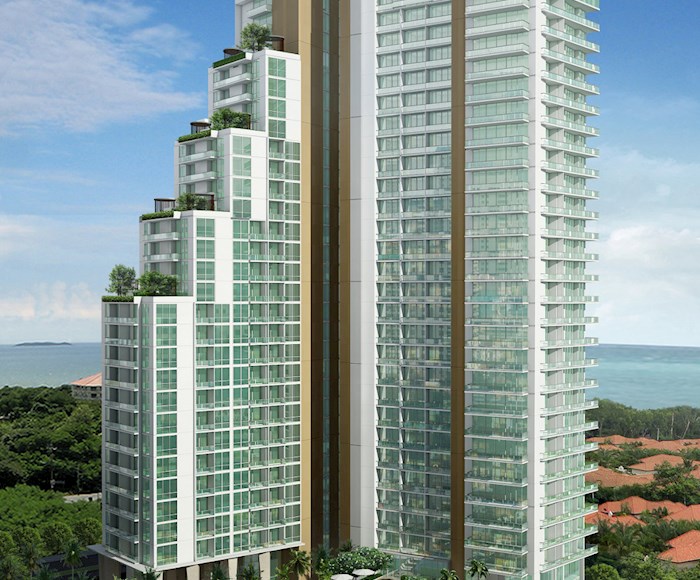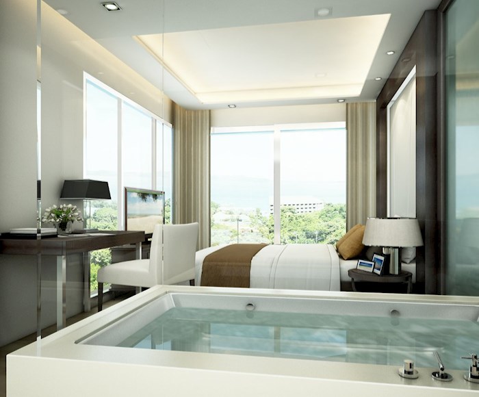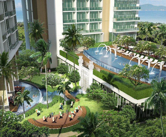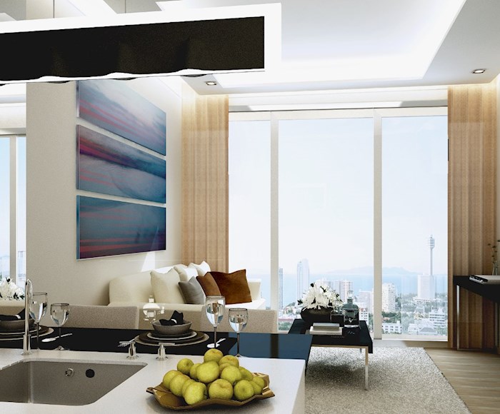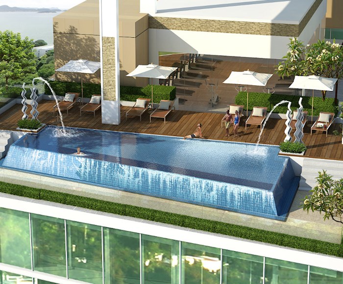 In The Peak Towers you can find studio suites, one bedrooms and two bedroom apartments, and even larger exclusive 'Prestige Units' on the 29th and 30th floors. Every unit type available here delivers the best in fashionable appearance but even more importantly in practicality. Standard materials include high quality tiling and wood laminate flooring, ‘floor to ceiling’ windows, and slimline air-conditioning units. Modern built in furniture, including high gloss kitchen cabinets and mirrored wardrobe. Every unit also owns a good sized balcony from which to enjoy the lifestyle and beautiful views together. The Peak Towers has a large main raised swimming pool adjacent to a strip of private salas. The water from this pool then cascading down to the shallow pool which is near to the children’s play area. This is all serviced by the in-house restaurant and overlooked from the business centre. On the rooftop you can enjoy the infinity edge rooftop pool, work out in the rooftop gym and fitness area, or relax in the sky lounge salas overlooking Jomtien Bay. Parking is on 5 levels and the security is assured by 24Hr CCTV, professional guards and electronic entry systems. Facilities : 3 Pool areas -Main swimming pool on 2nd floor (Tower A) – Main communal area; Infinity edge swimming pool on the rooftop area (Tower A); Shallow depth pool on the ground floor (Tower B) – Relaxation & Children swimming area; Equipped fitness and exercise room on the rooftop area; Sky lounge relation salas on the rooftop area (Tower A); Businesscentre with internet and meeting areas(TowerB); Restaurant & Shop area (Tower A); Laundry and housekeeping services.