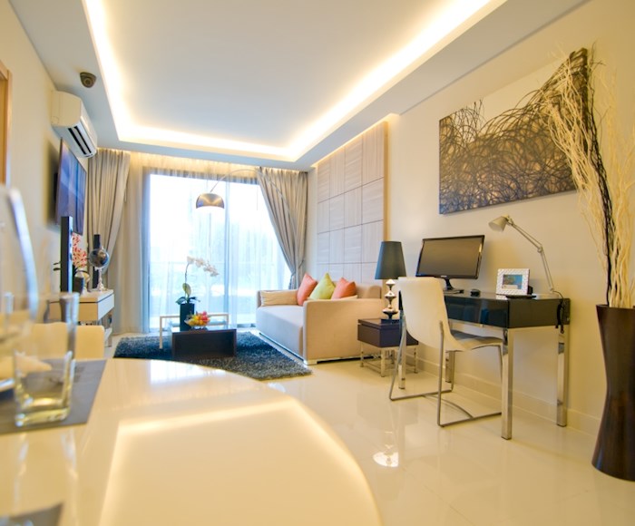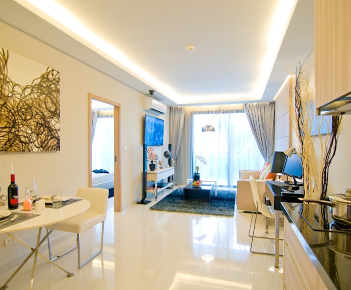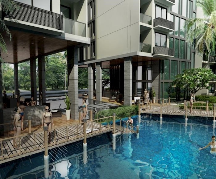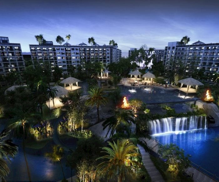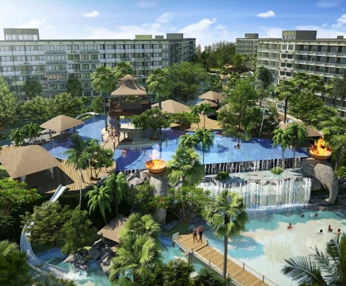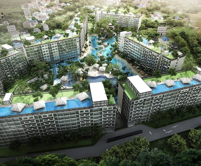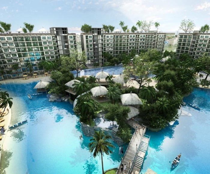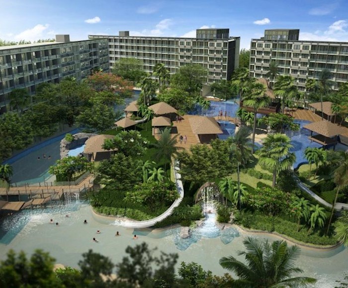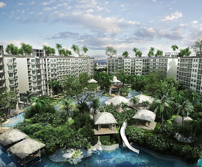 The Laguna Beach Resort - The Maldives features an enormous recreational area of over 60% with Maldives-themed lagoon pool of over 5,000 sqm running through the entire development. This comprises 3 different pool areas, featuring numerous landscaped islands, boardwalks, Gazebo-relaxation areas and three white-sand beaches. Each building, comprising modular studio and 1 bedroom apartments, is set on the outside of the resort, allowing for distances of 120m between buildings. Apartments are modular in design with the potential to create larger 2 or 3 bedroom options by combining multiple units. Interior units will feature stunning lagoon pool & tropical landscape views. Exterior apartments overlook the verdant Jomtien parkland, also with Pattaya city & Jomtien bay views on higher floors. Additional amenities include a child's Go-Kart track, tree-houses and tree-top pavilions. Shops, bars & a restaurant will be on offer in the in-house commercial area, with underground parking provided for residents' convenience. Luxurious open-air lobby areas, multiple fully-equipped gymnasium suites, and a relaxing massage and spa service, Jacuzzi zones, botanical gardens, waterfallsand water-slides provide a uniquely welcoming experience.