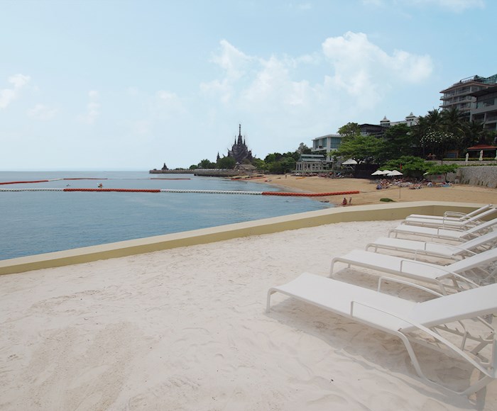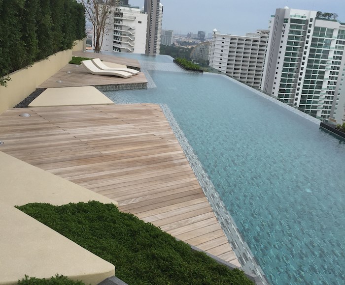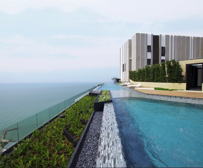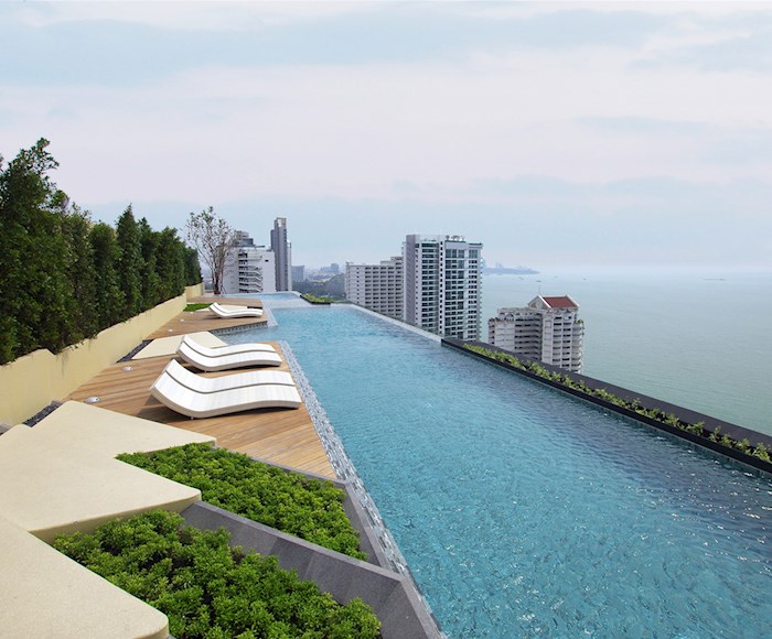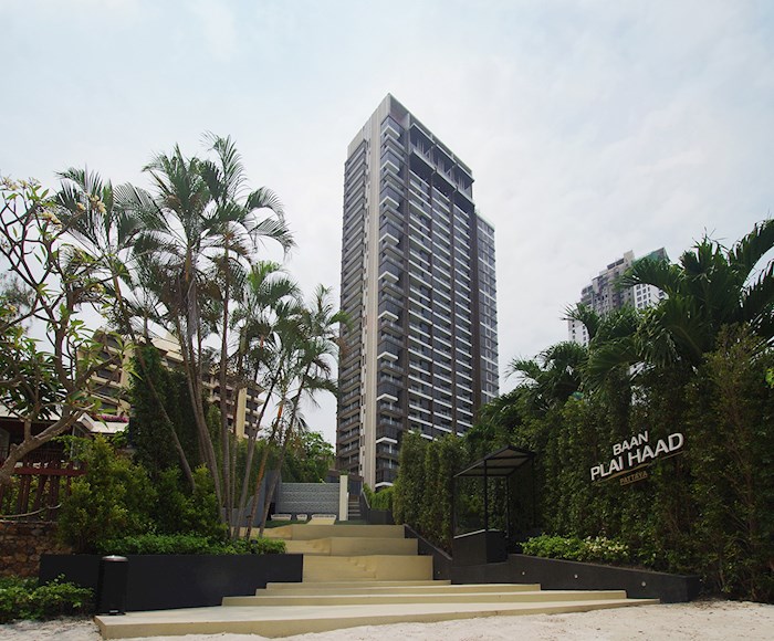 Baan Plai Haad is a high rise beachfront condominium, located in a prime area of Pattaya with direct private access to Wong Amat Beach. The most units feature sea views and a minimalist open-plan layout. Facilities and services : resort - open style lobby; infinity sky pool and party deck with 360 degree rooftop view, sundeck and male and female change rooms on the 30th Floor.; large swimming pool, kids pool and 360 degree view outdoor jacizzi with lush tropical landscaping on the ground floor; sea view fully equipped gymnasium, male and female change rooms, lockers, showers and a sauna on the 3rd Floor; B.B.Q. terrace and stainless-steel ‘Char-Griller’ branded grill on the 4th Floor; access to a private, man-made, white sand beach via either a stairwell or funicular lift; 5 Floors of covered car-parking space; wireless Internet available on facility floor and in the lobby.