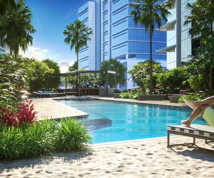 Capri gives you access to breathtaking lagoon pools, a multi-million dollar sandy beach and spectacular dual level waterfall (Stage 2). Each Capri apartment feels like a luxurious island. Sleek lines are finished in elegant, uplifting neutral tones and lavish fittings. Embracing open plan living, the 207 one and two bedroom residences are bathed in natural light, with floor to ceiling windows. Facilities : Residential terraces; Fire pit; Sub-tropical planting; Pool lawn; Lagoon and Beach; Lap pool; Pool seating ledge; Water features; Private pool rooms; Yoga lawn; utdoor covered kitchen area & bar; Private reading rooms; Bar. Thanks to its central location, your daily commute is short and sweet with trains, buses and City Cat ferries easily accessible nearby. Although life goes down a gear on the weekends, keeping active is easy with City Cycle bike hire and the magnificent river walk right on your doorstep. Located close to some of Brisbane’s most well respected primary and high schools, like All Hallows Private Girls’ School, St Joseph’s College Gregory Terrace, Brisbane Girls’ Grammar and Brisbane Grammar School. Higher education is also covered with Queensland University of Technology, Griffith University, University of Queensland and South Bank Institute of Technology all located close by.