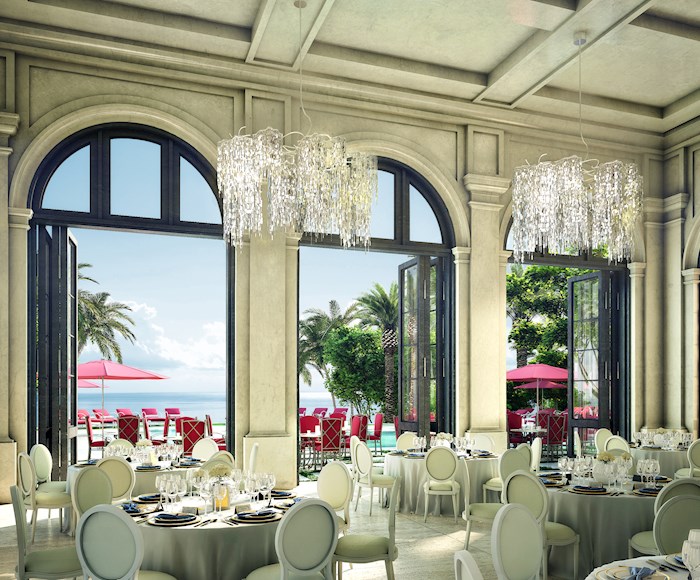 Over 50,000 square feet of remarkable amenities, including a spa and fitness center. One of a kind dining with a world renowned restaurant and Circus Maximus; a full floor of magical amenities including an ice skating rink, a Formula One simulator, a golfing simulator, bowling lanes, a movie theater, and a Wall Street Trader’s Club room, Speak easy, Cigar lounge, and wine lounge. Villa Acqualina’s utmost service will be extended to the water's edge for residents to enjoy drinks and dining on the beach. The Estates’ “backyard” is a lushly landscaped arena for celebrating the sporting life or observing it from the meticulously manicured sidelines. Beautifully curated gardens featuring multiple infinity pools, a basketball court, a romantic beachfront restaurant and bar.