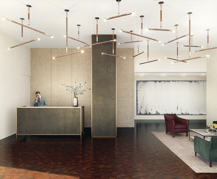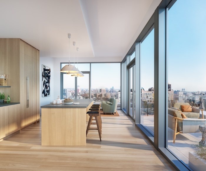 Throughout the residences, Selldorf’s elegant minimalism is evident, with finely modulated elements, precision, and clear geometry combined to perfection. At the building’s base, a two-story podium — distinctively detailed with metal, granite, and a backlit transom of inlaid glass —brings a sophisticated jewel box quality to University Place and integrates a series of shop fronts with the streetscape. The lush landscaping of the podium enriches the living experience of the residences and infuses the area with greenery, continuing the foliage and parks so integral to the neighborhood.