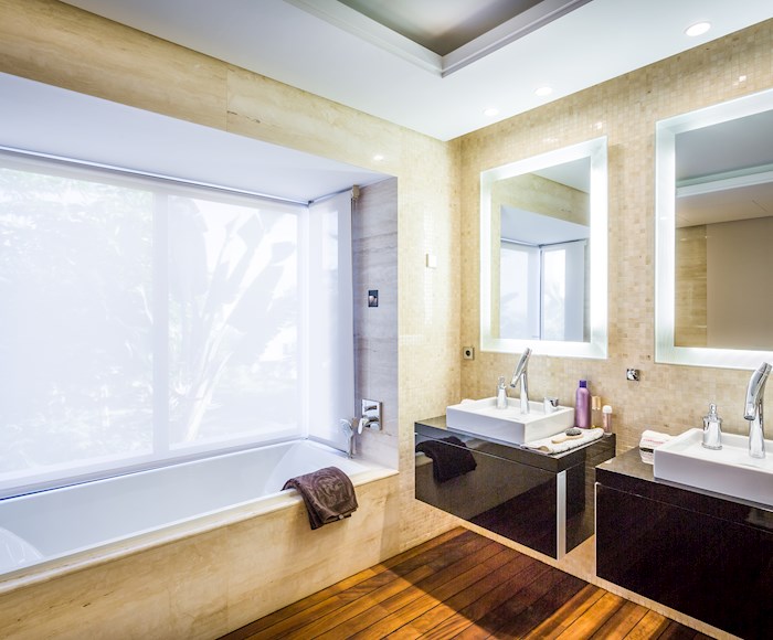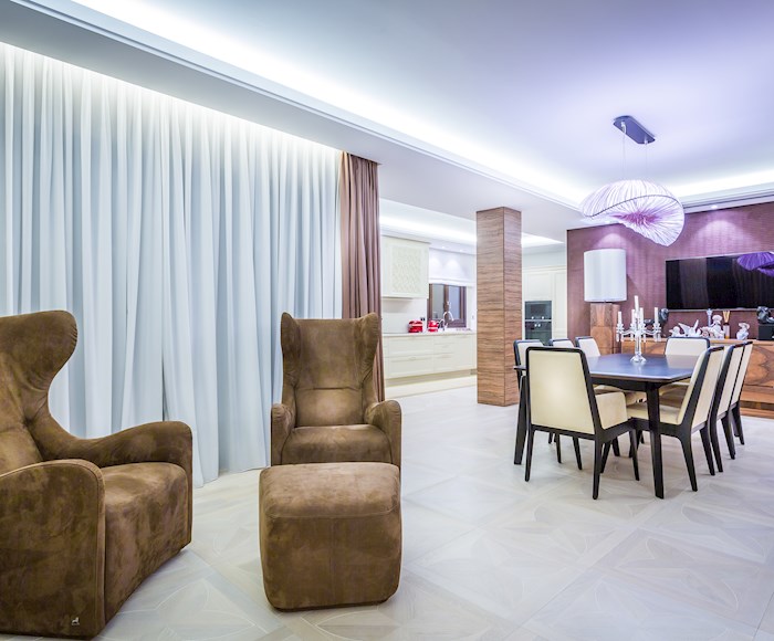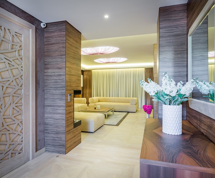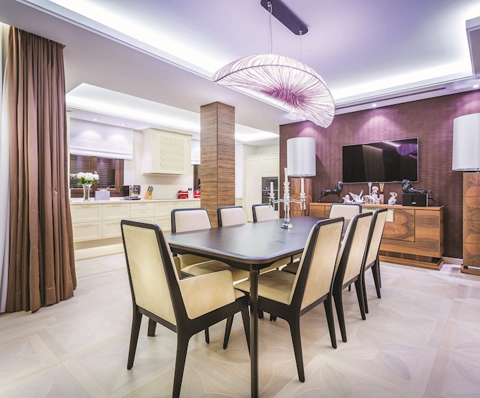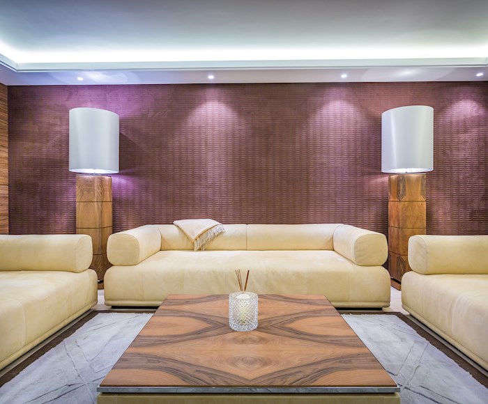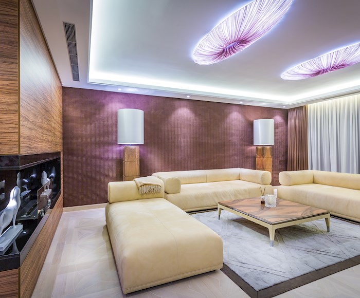 Villa Magna is very spacious and full of natural light. Its’ style gives you a sensation of clearness and lightness. The ethereal lighting from the brand Acqua Creations completes this image. Smooth lines, perfectly selected accessories, unexpected combinations of materials, luxury and really stylish furniture – these are only few attractions of the villa.