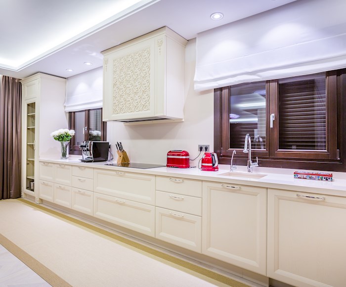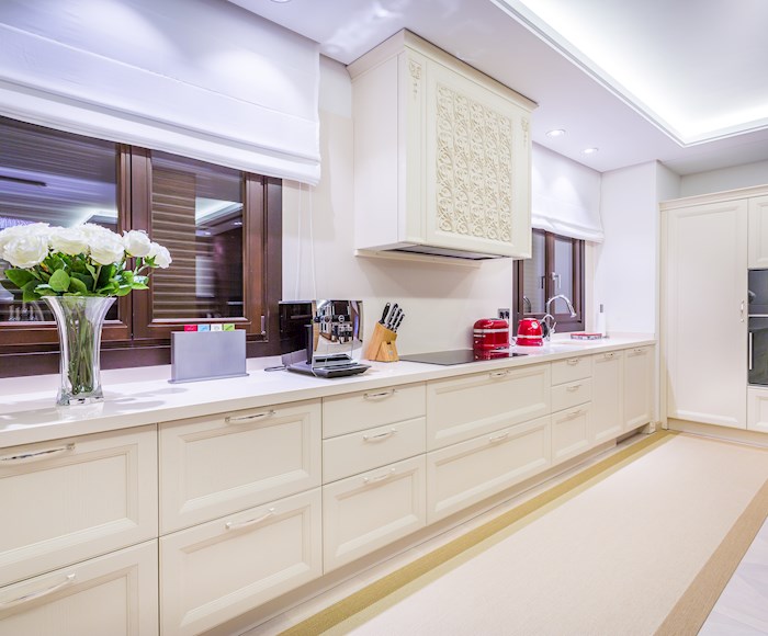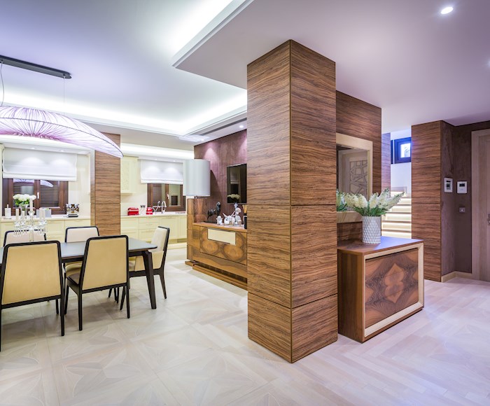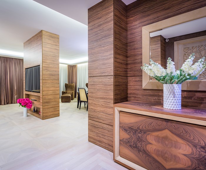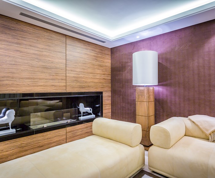 A special attention should be payed to the materials and textures of the interior decoration. The suede wall-covering from the famous brand Arte, wooden parquet of the highest quality and stylish accessories from the most important Italian brands create the unique style of this villa.