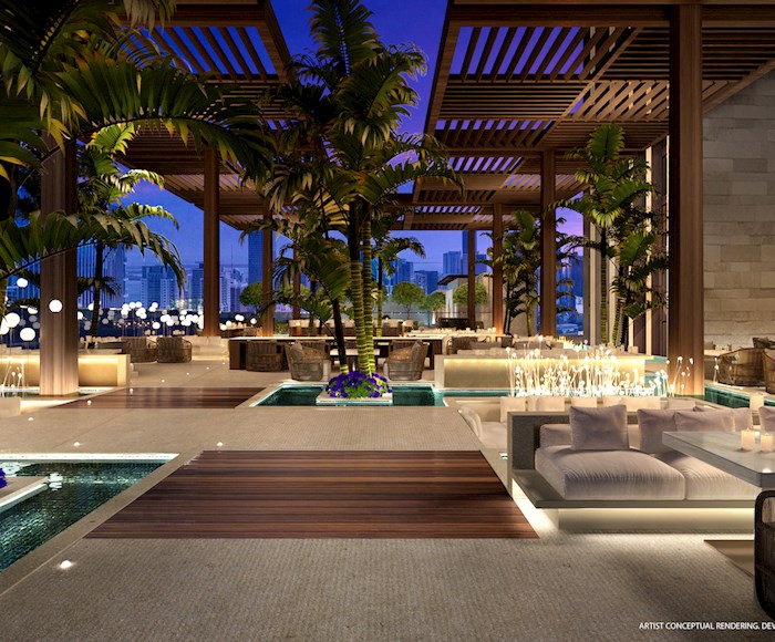 Amenities will include: The atrium, two stories of common areas in the building's rooftop with a pool, social lounges, and a clear structure which ensures amazing city views, The Miami’s First International Business lounge; Medical and Wellness Center which will offer unparalleled access to the best practitioners and technology in the areas of health, wellness, beauty and longevity.