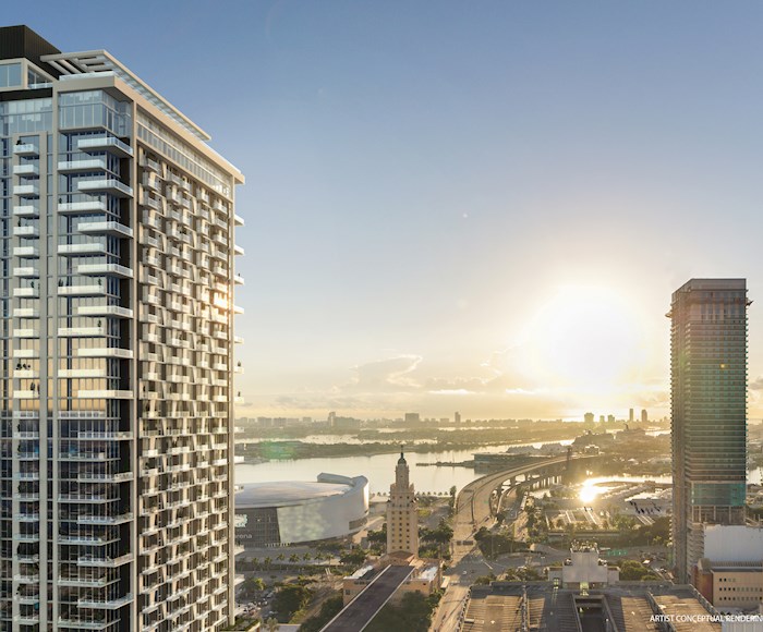 Over 22,000 sq. ft | 2,050 m² of amenities Expansive rooftop resort-style pool with jacuzzi, cabanas and grilling stations perfect for entertaining Private rooftop restaurant/bar Italian inspired trellis garden Inviting fire pit lounge with breathtaking views of the Biscayne Bay skyline State-of-the-art fitness center featuring saunas and plunge pools Clubroom with private dining and stunning water views Convenient juice and coffee bar Spacious coworking center Gaming lounge Curated museum quality art throughout all common areas 24/7 security services, high- speed elevators, and controlled property access 24/7 concierge services European porcelain floorin