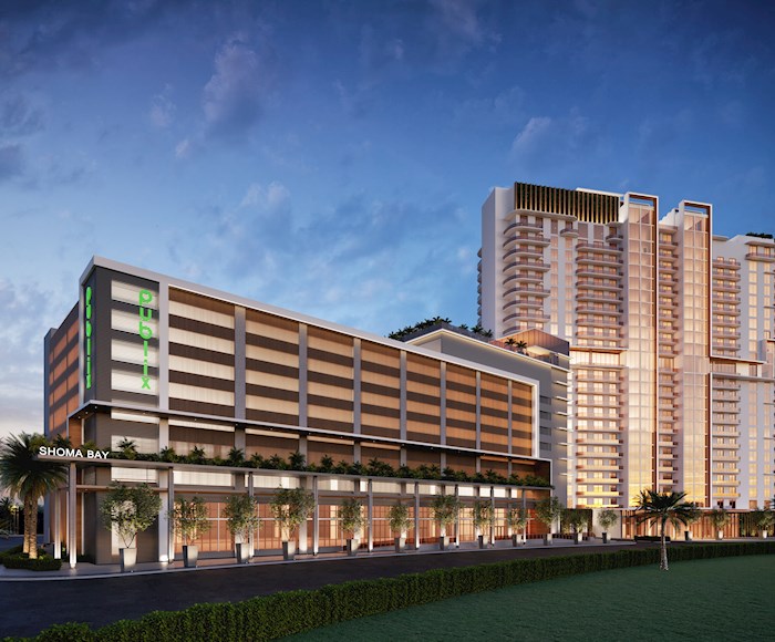 Anchored by a 36,068 sq.ft. Publix, the project will boast a 21-story, 327-unit modern apartment community and 6,315 sq.ft. of retail space including a rooftop restaurant and a Shoma Bazaar food hall