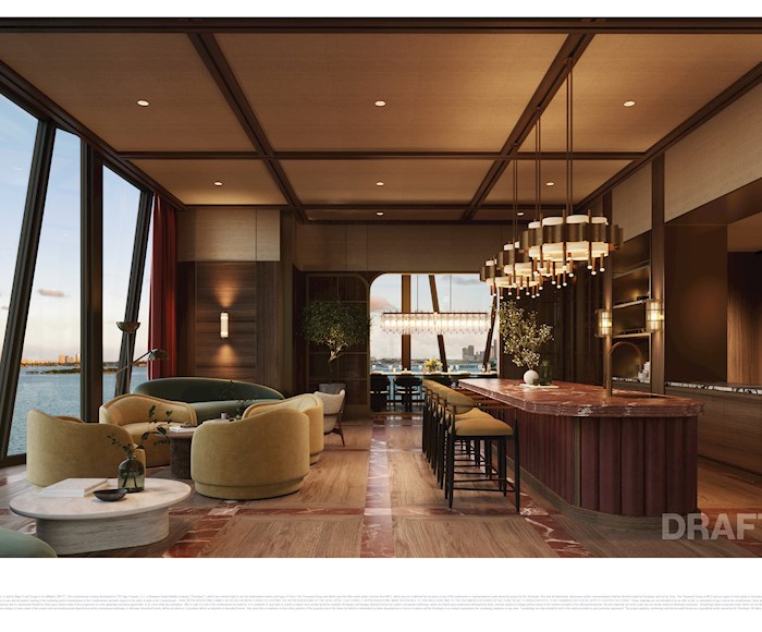 The first 5 levels are comprise 30,000 sq feet of amenities dedicated to a private club for owners: Lake Como inspired floating pool in Biscayne Bay along with a sunset pool, Beach Club at the new Nikki Beach (new name), screening room, bank-style vault, relaxation lounge, hot/cold plunge, sauna/steam, kid’s lounge, boxing and yoga room, fitness center, game room, conference rooms, helipad, dock, pool, and more…